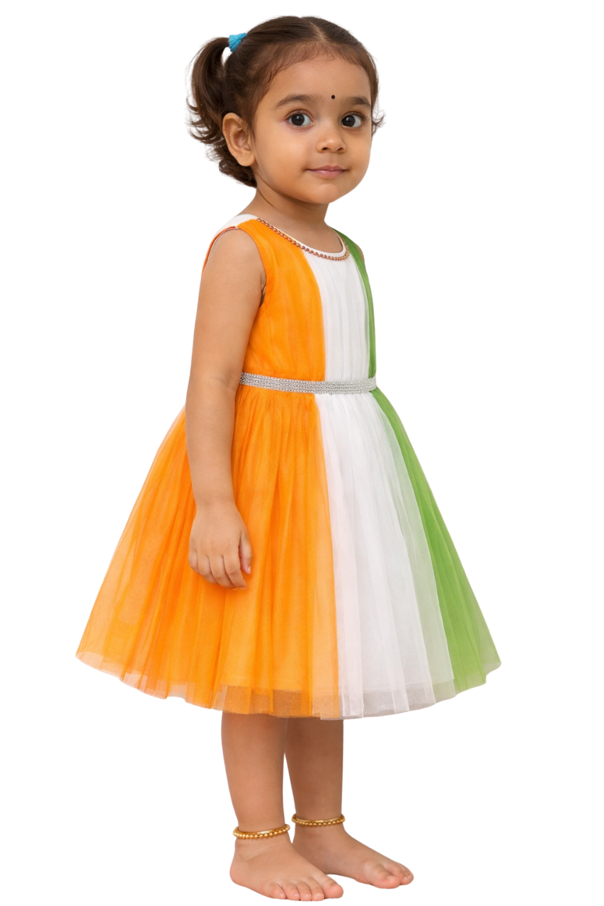 Girls Tricolor Party Wear Frock Dress | Kids Independence Day Special Dress